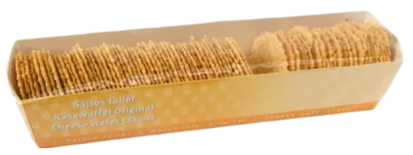 Szuper kis dobozkában lapuló ropogós sajtos tallérkák, a Ziegler Kft üzeméből egyenesen.